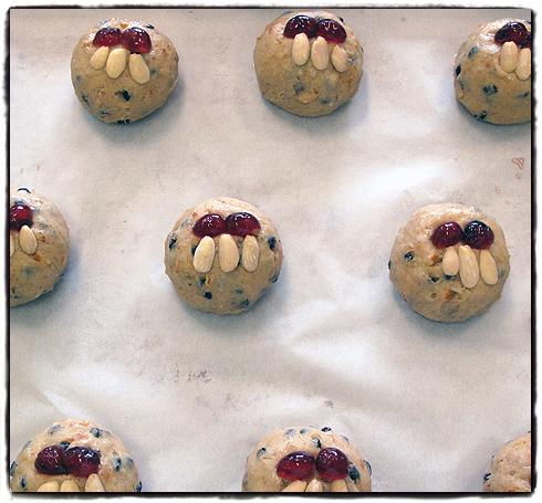 Then we reached the Fat Rascals area. I was encouraged to join in with the mixing and shaping, surely I needed the recipe to be of help? Alas, no. I was allowed to shape and top the rascals with their signature blanched almonds (always three) and cherries (always two halves) but that's where it ended.