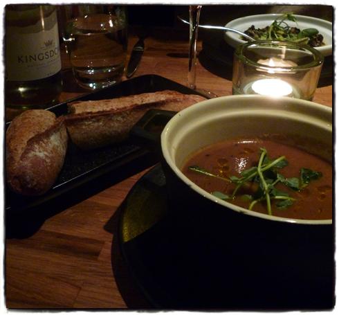 The friendly staff ushered us into a calm and stylish dining area, avec authentic French accents, sans authentic alpine gingham. Our very hungry post-imaginary-ski tummies happened to notice that the frites looked especially good, and we overheard a fellow diner exclaim that the dauphinoise was delicious. But we decided to leave plenty of room for the main event, and started with a traditional soupe à l'oignon.