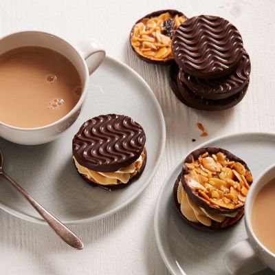 Thomas Fudge’s new Chocolate Orange Florentines are a fusion of caramel, fruit, almonds and dark chocolate. For a tea time treat, serve these mini cheesecake sandwiches. Make a filling of mascarpone mixed with double cream and some orange juice, sugar and vanilla, then use your favourite Thomas Fudge Florentine to sandwich together. Because life’s too short for mediocre.