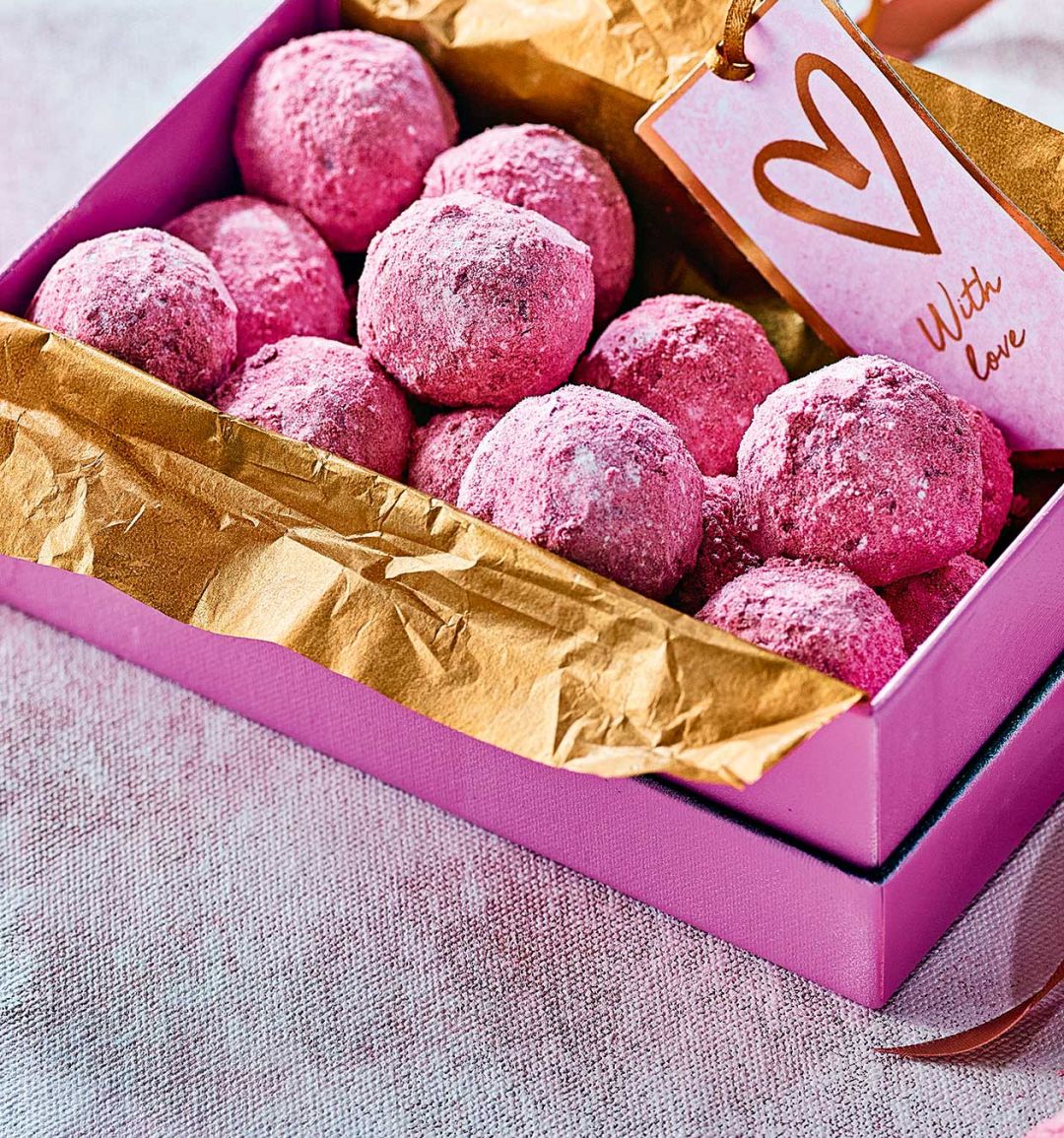 - When the mixture is firm, use a teaspoon to scoop spoonfuls of the mixture. Roll these into small balls between your hands, arrange on a baking tray and return to the fridge for 30 minutes. Once firm, lightly toss in the icing sugar until just coated. Store the truffles in an airtight container in the fridge until ready to gift – they’ll keep for up to 10 days. Present them in a decorative box lined with tissue paper. *Use vegetarian prosecco, if required.