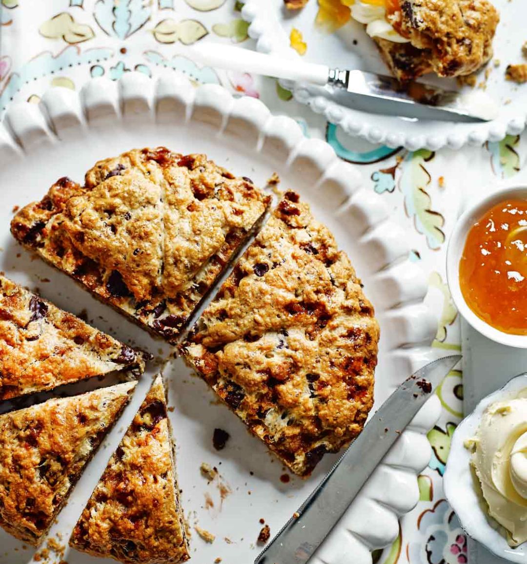 Honeycomb, chocolate and orange scone wedges