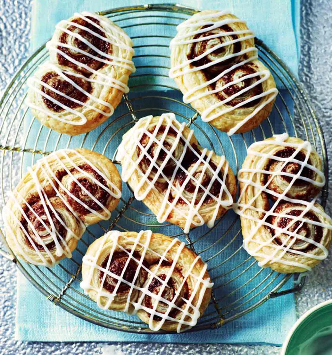 - Transfer the baked swirls to a cooling rack and place the baking tray underneath the rack. Leave to cool a little, then drizzle icing over each one. Eat warm or leave to cool completely.