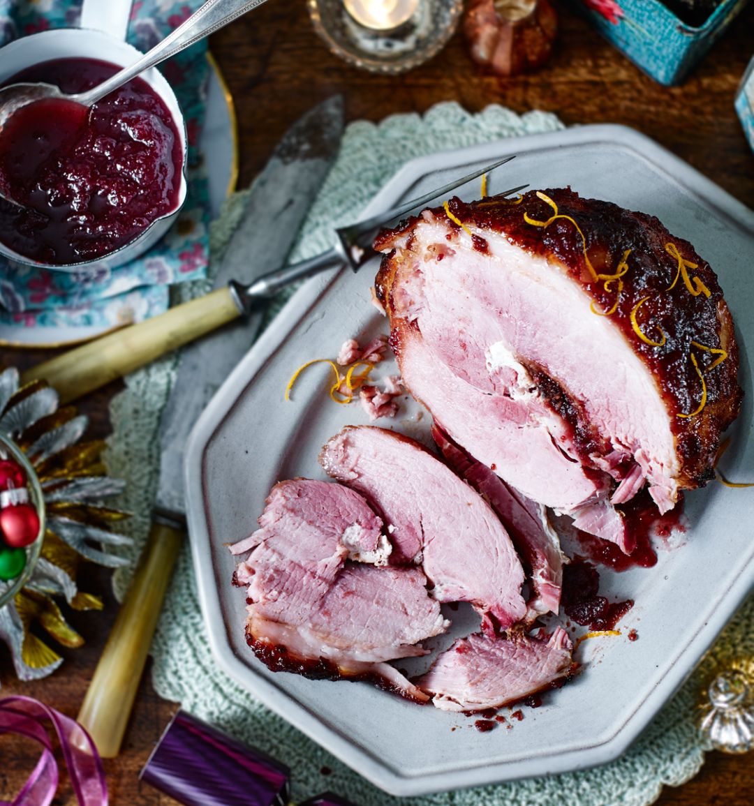 Who says cranberries are just for the turkey? Here, the bittersweet berries make a gorgeously tart and sticky glaze for that king of the festive buffet, a magnificent baked ham.
