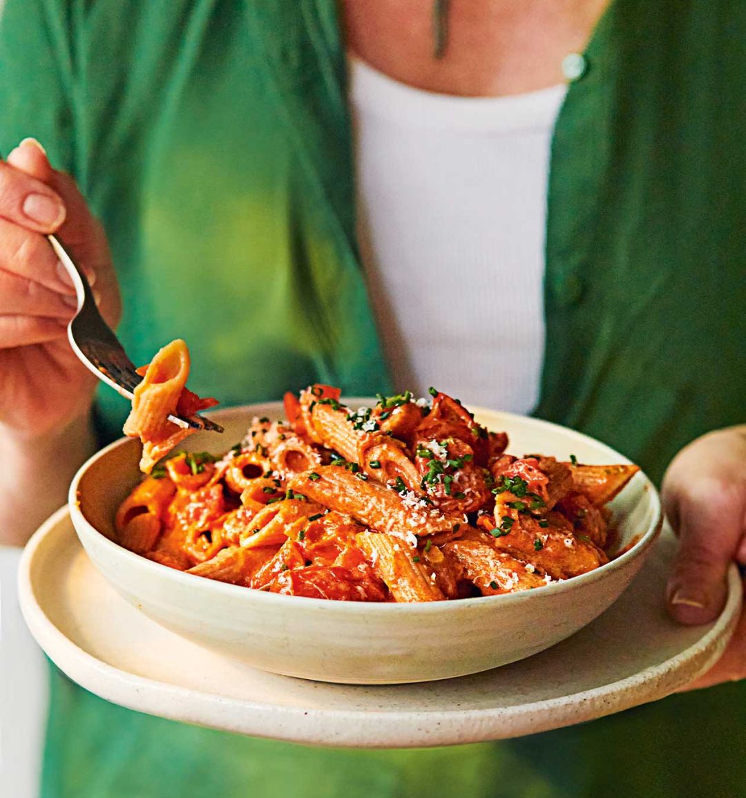 Gochujang, a Korean paste made from red chillies and fermented soybeans, elevates this fresh tomato pasta. The quantity here gives a smoky, gentle kick of heat, but add more gochujang if you enjoy spice
