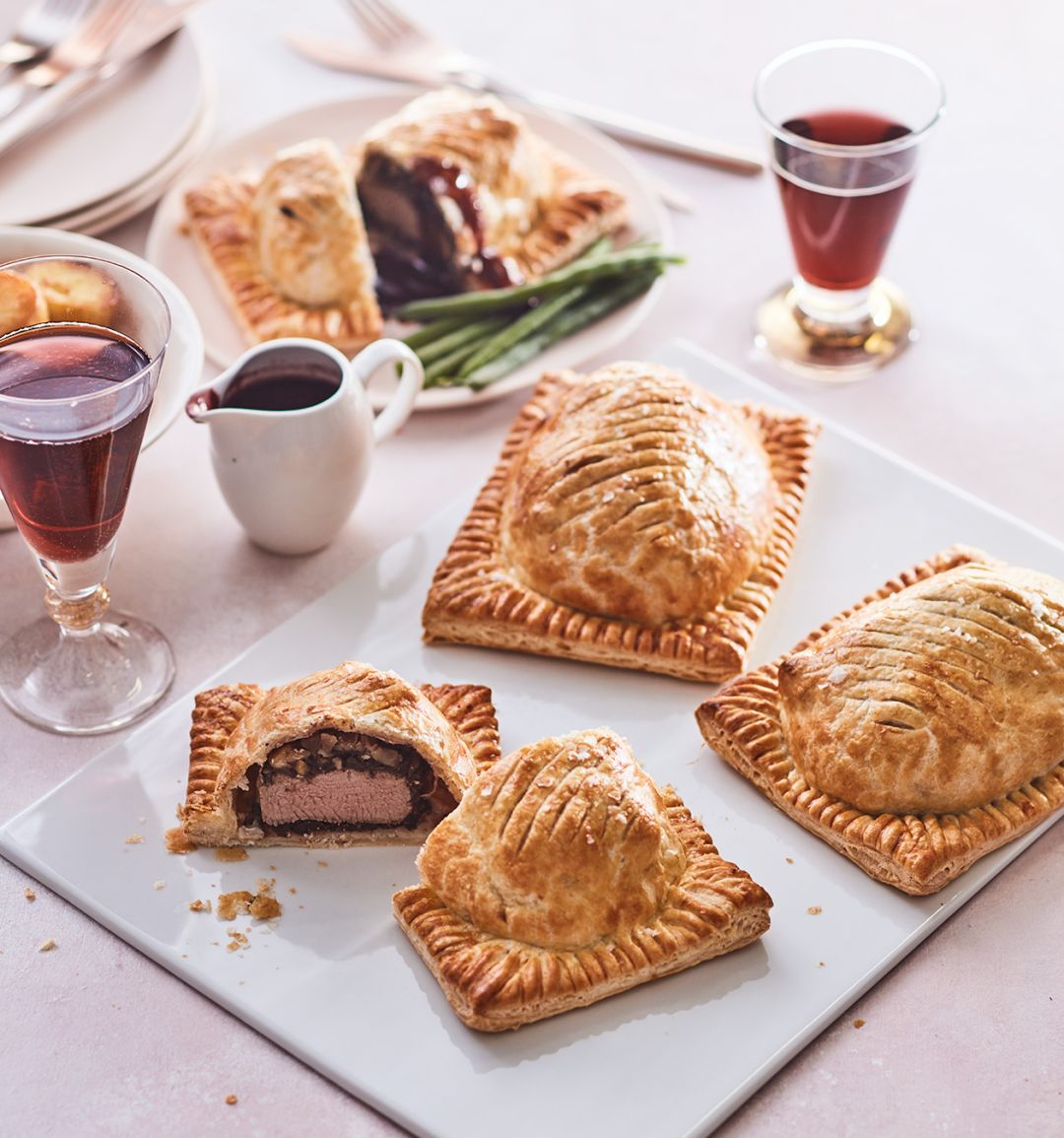 This twist on the classic beef wellington is bursting with flavour. They can be made up to a couple of days ahead, then popped in the oven when guests arrive. Serve with Tenderstem broccoli and buttered Chantenay carrots