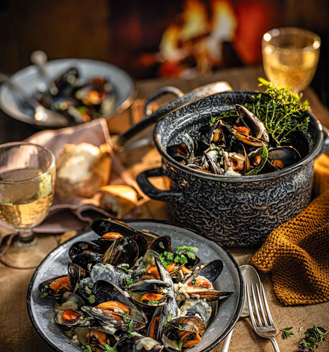 Subtly sweet cider pairs so well with briny mussels. Treat yourself to an extra glass of cider on the side