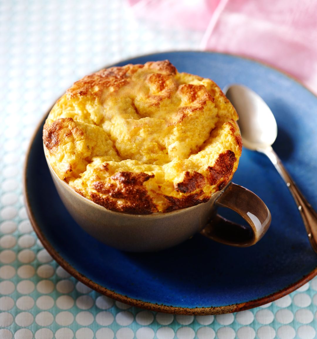 - Meanwhile, brush the insides of 4 x 300ml ovenproof mugs, teacups or ramekins with the butter and sprinkle with the breadcrumbs so the insides are thoroughly coated – this helps the soufflés to rise well.