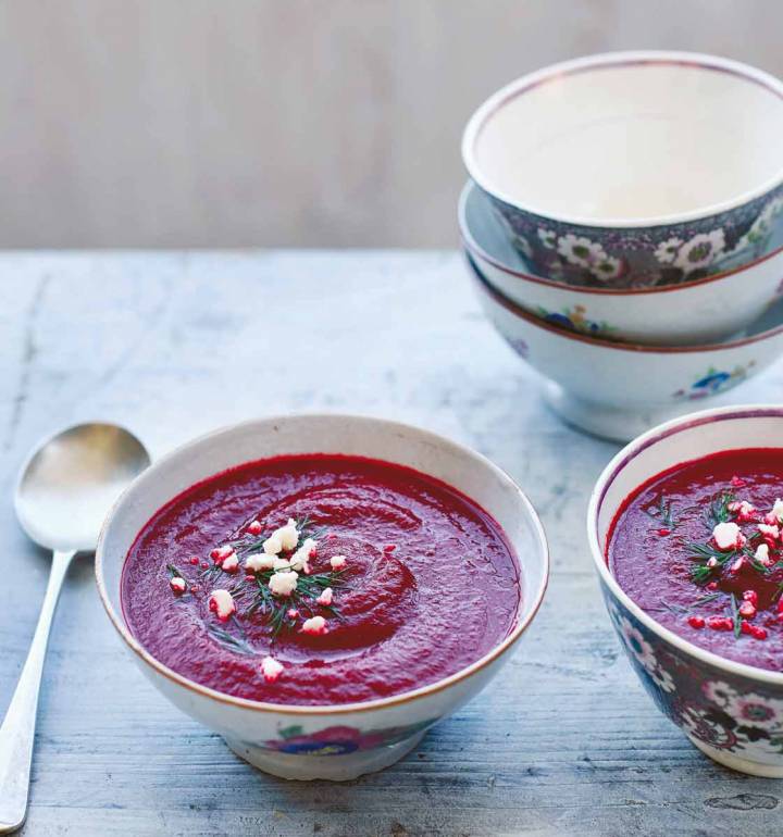 - Add the vodka, if using, and continue to cook, uncovered, for 5 minutes to allow the alcohol to burn off. Take the pan off the heat and leave to stand for 5 minutes, then blitz the soup in batches, in a liquidiser or using a stick blender; you want the texture to be very smooth. Serve with a crumbling of feta and a few fronds of fresh dill.