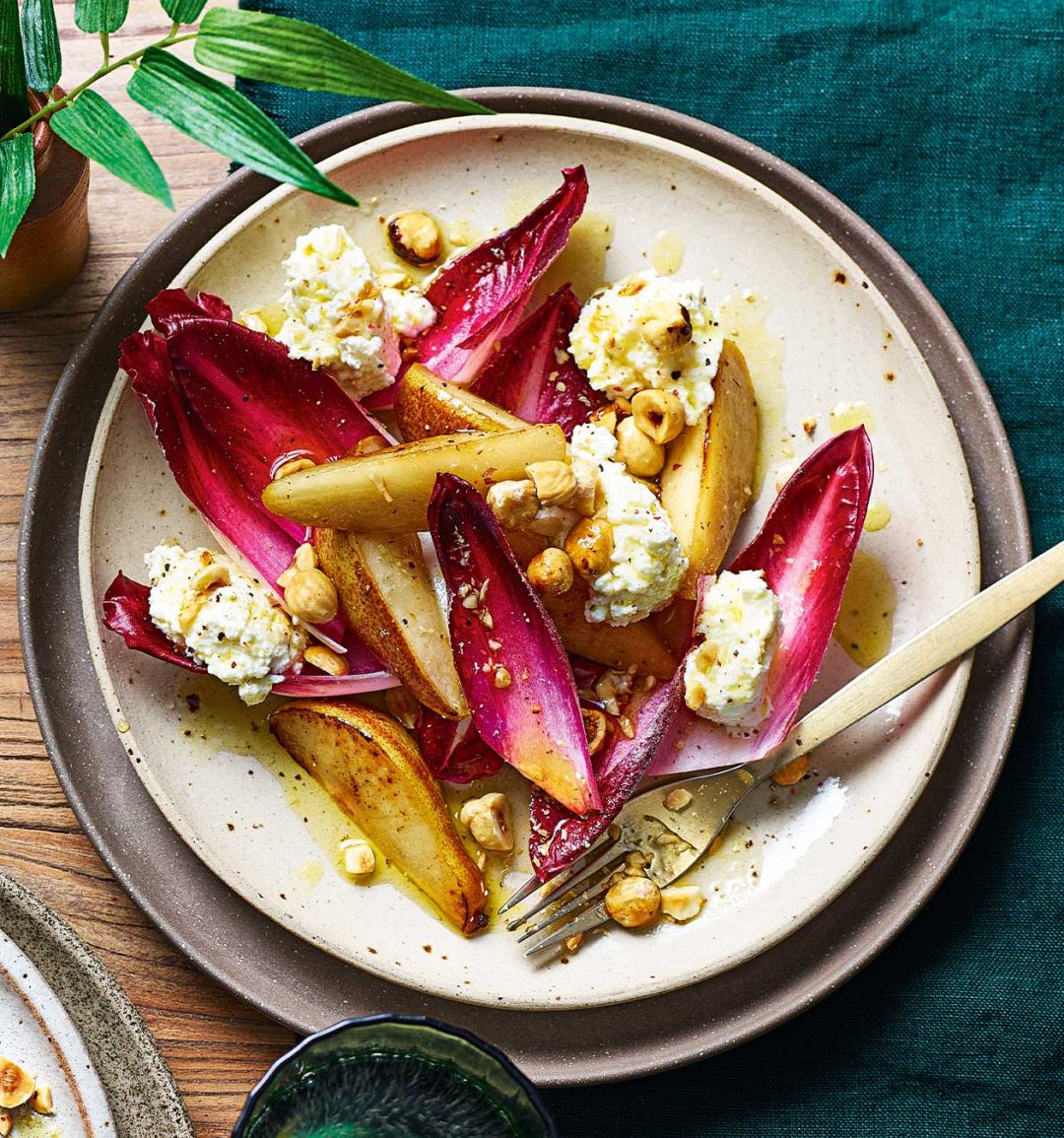 Fried pear, chicory and ricotta salad