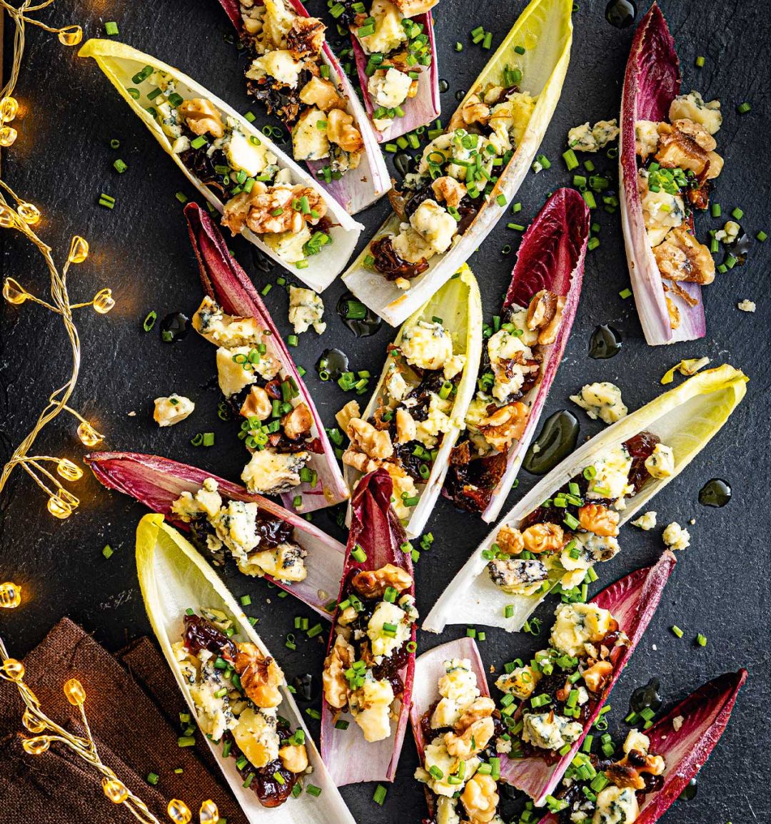 Stilton and chutney chicory boats